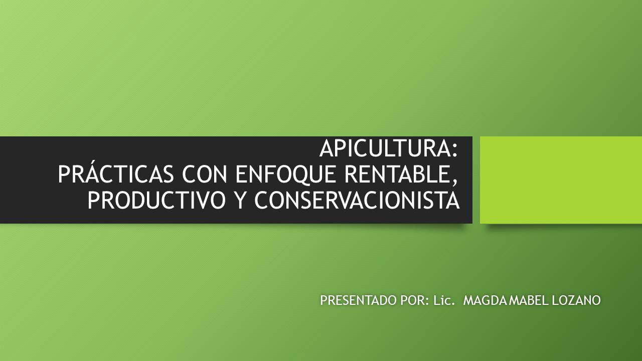Ponemos a su disposición de la Lic. Magda Lozano, denominada "Apicultura: Prácticas con enfoque rentable, productivo y conservacionista" .