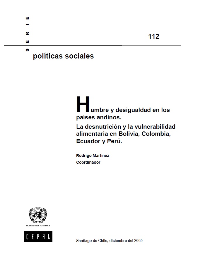 Título: Hambre y desigualdad en los países andinos. La desnutrición y la vulnerabilidad alimentaria en Bolivia, Colombia, Ecuador y Perú.