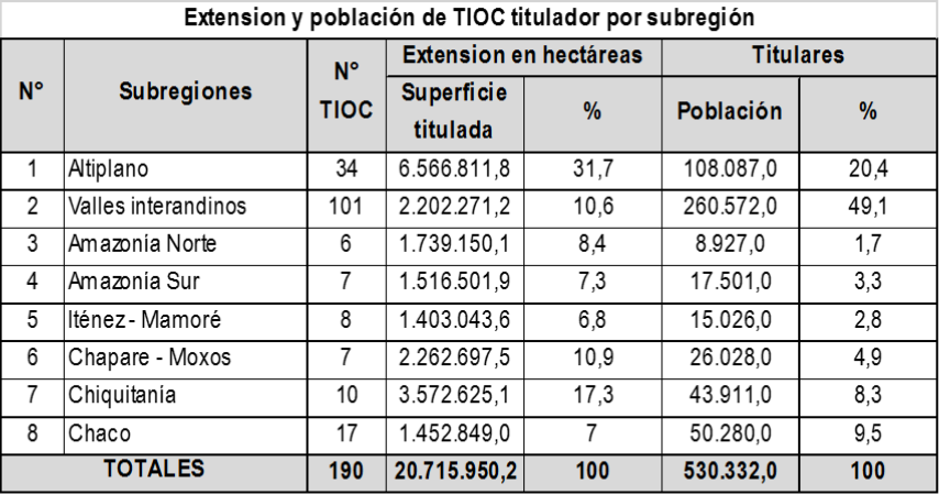 Fuente: Fundación Tierra (http://www.territorios.ftierra.org/index.php?option=com_content&view=article&id=99:bolivia-territorios-indigena-originario-campesinos-titulados&catid=38:mapascont&Itemid=18)